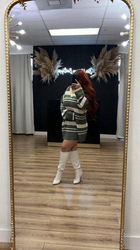 Autumn feels sweater dress - Olive/cream