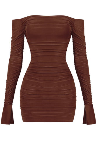 Priscilla off shoulder dress - Brown