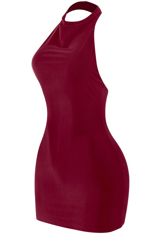 Expensive taste halter open back dress- Burgundy